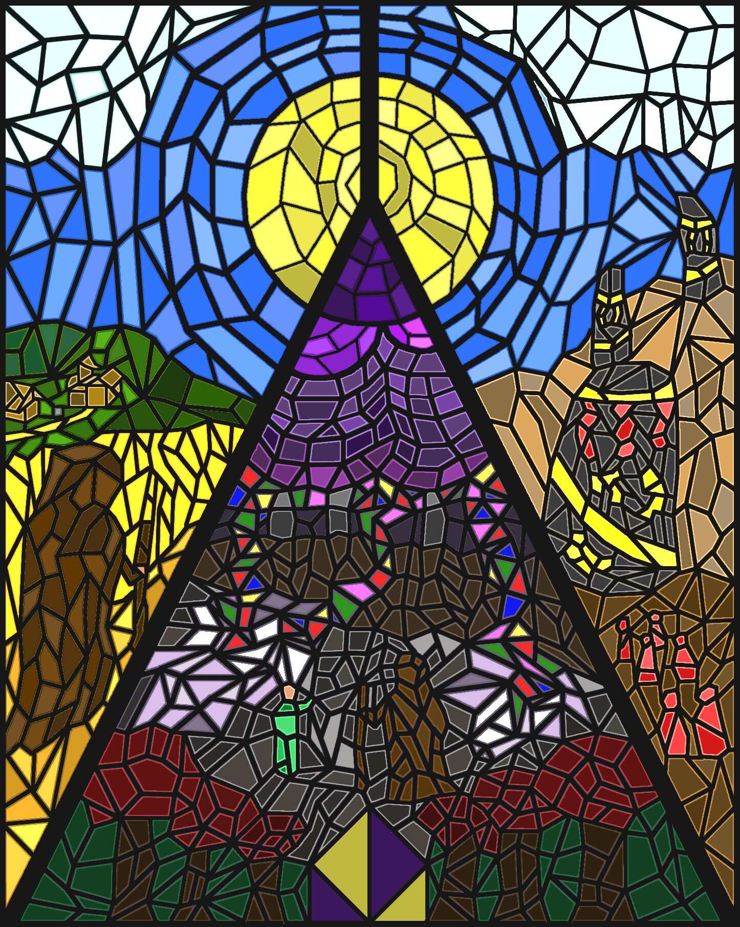 Kiedy wyszli na otwartą przestrzeń, księżyce świeciły jasno na niebie, zbliżając się do corocznej trójpełni. Ich blask jednak zdawał się nagle blednąć przed dotarciem do ziemi. Jasna łuna wisiała w powietrzu ponad głowami wędrowców, kiedy oni sami kluczyli w mroku. Pod ich stopami wiły się metalicznie połyskujące pęknięcia w ziemi. W sobie tylko znany sposób chłonęły światło księżyców, które wirowało w dół dziesiątkami barwnych strumieni.