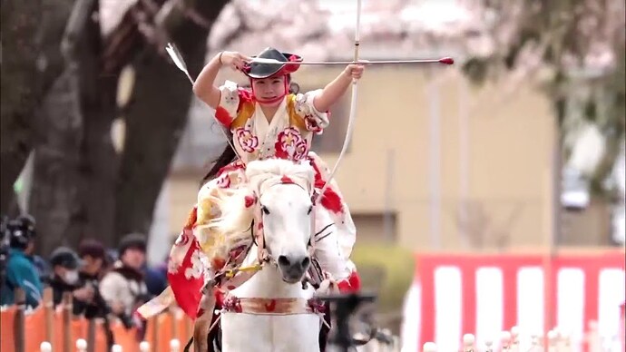 Technika jazdy używana w yabusame, japońskiej sztuce łucznictwa konnego również zakłada podniesienie się z pełnego siadu na strzemionach - jest pod tym względem podobna do półsiadu.