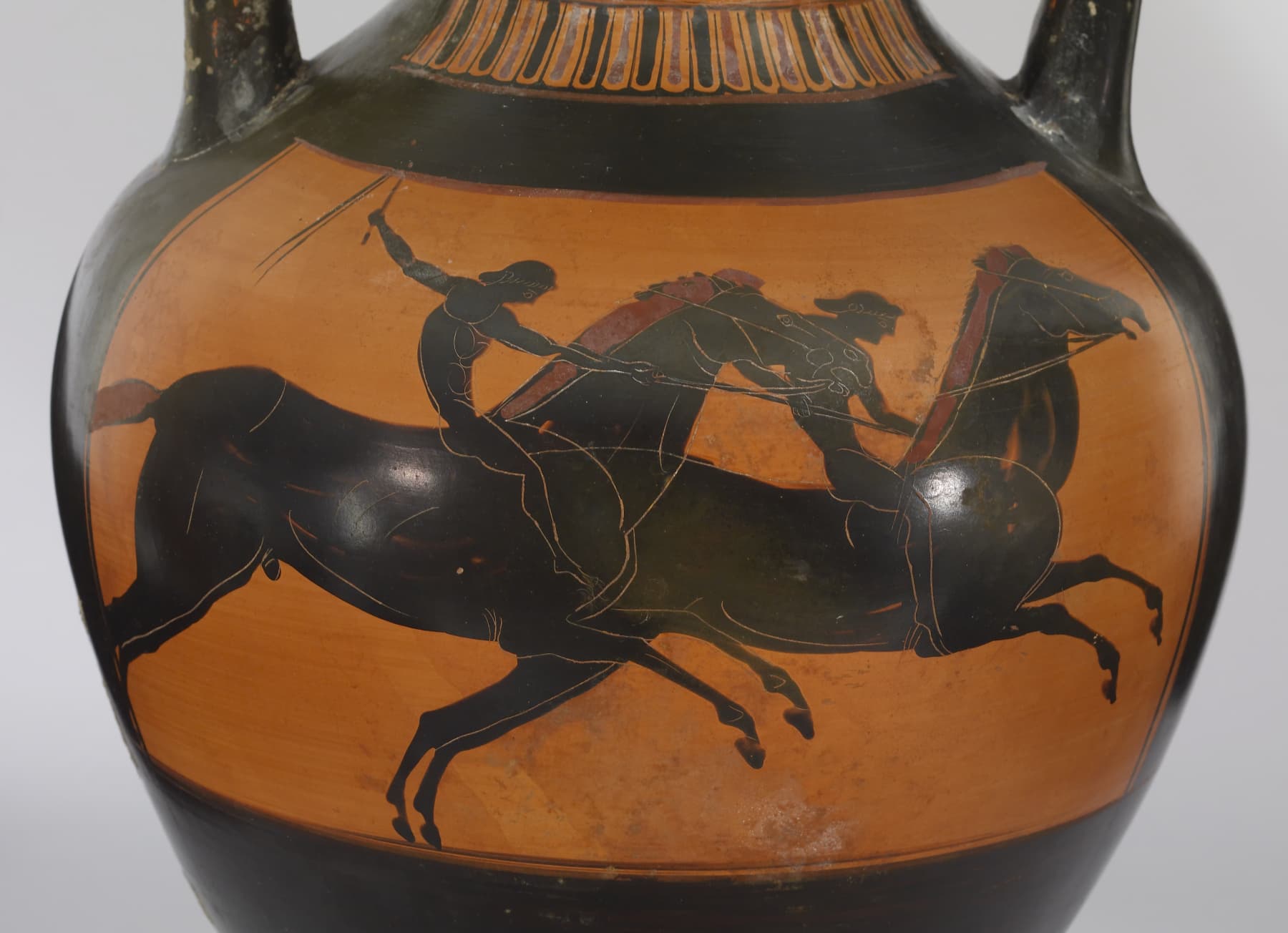 Brak strzemion niestety jest dość dokuczliwy w kontekście militarnym, bo nawet w siodle znacząco pogarsza stabilność jeźdźca na koniu. W związku z tym w starożytnej Grecji polecało się trenować jeźdźców w przepychaniu się tępymi oszczepami w trakcie jazdy, tak żeby uczyli się utrzymywać równowagę mimo prób zepchnięcia. Co dość oczywiste, słabe oparcie na koniu uniemożliwiało także włożenie całego impetu szarży w uderzenie bronią drzewcową.