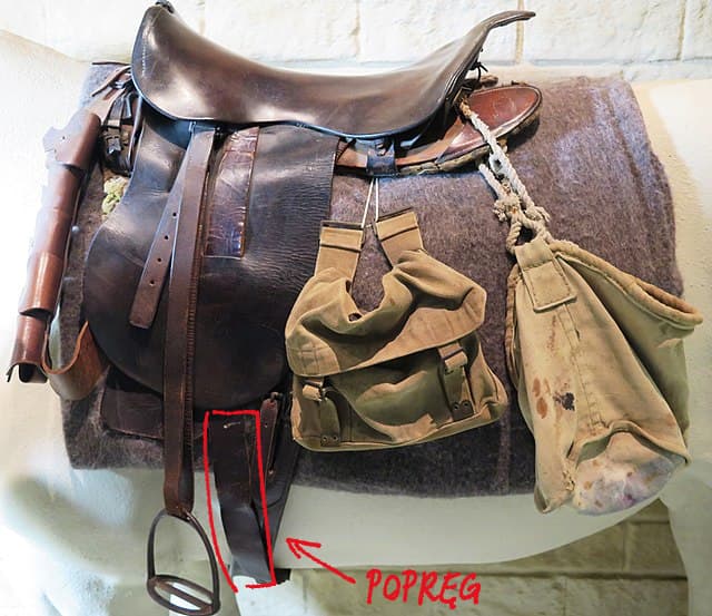 Zerwanie się popręgu to awaria siodła która jest wspominana w historycznych tekstach - nie ma zbyt dużo rzeczy, które w takim scenariuszu uchroniłyby jeźdźca przed upadkiem z konia, bo leci się, siłą rzeczy, razem z siodłem.