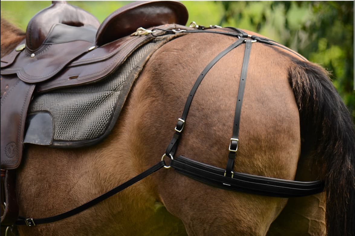 Do jazdy terenowej koń może także poza siodłem i ogłowiem nosić przypięte do siodła torby podróżne.