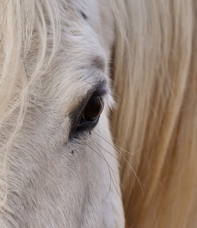 Endo, internetowy poster boy niewidomych koni. Stracił oczy w wyniku choroby, ale zniósł to wyjątkowo dobrze, a jego właścicielka wyspecjalizowała się w szkoleniu niewidomych koni.