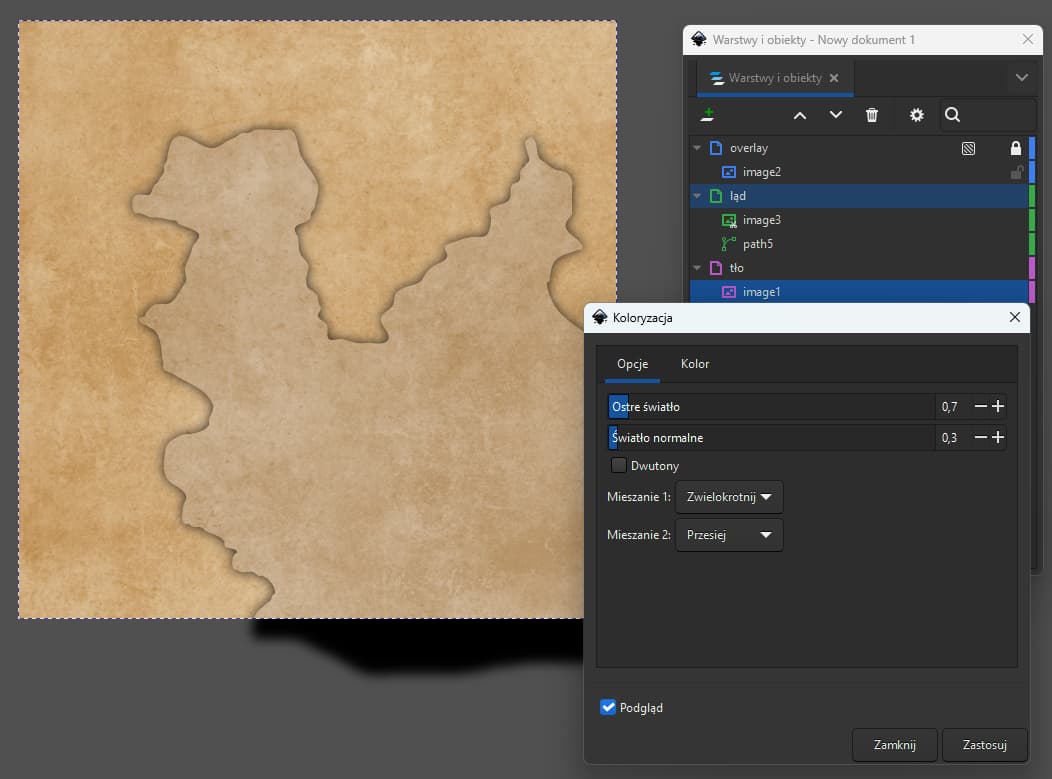 Jak uzyskać efekt “pergaminu” czy jak to nazwać inaczej, po prostu widoczny efekt różnych odcieni brązowej barwy na mapie?
