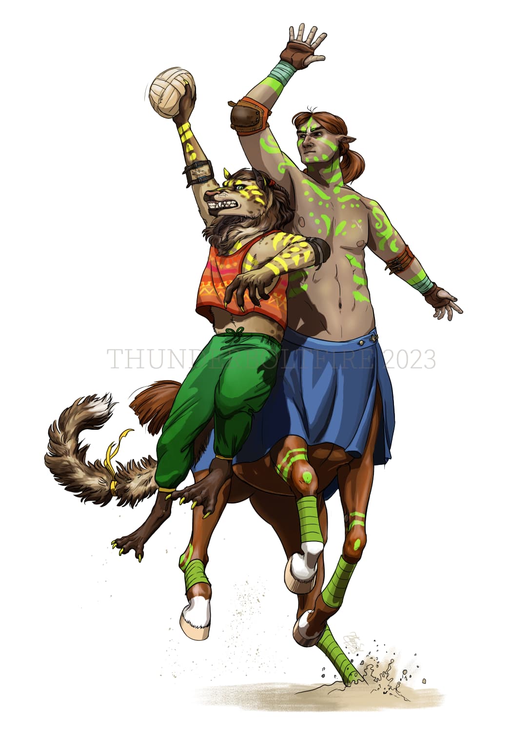 W ciągu kilku następnych dni sytuacja zaczęła wyglądać mniej wesoło. Po bezkonkurencyjnie wygranych biegach centaury całkowicie zdominowały również rzut oszczepem. Co prawda nie wzięły udziału w wyścigach dewarów, a zawody na równoważni skończyły jako przedostatnie, jednakże przeciąganie liny skończyło się zanim się na dobre zaczęło. Jedyna kobieta w centaurzej drużynie okazała się być znakomitą zawodniczką w raethern – kombinacji biegu terenowego i strzelania z łuku. Niemal przefrunęła przez cały tor, szpikując tarcze strzałami. Nazajutrz jej pobratymiec we wręcz upokarzający sposób położył w zapasach najroślejszego Podłuczanina i na dwa dni przed finałem centaury znacząco podskoczyły w tabeli.