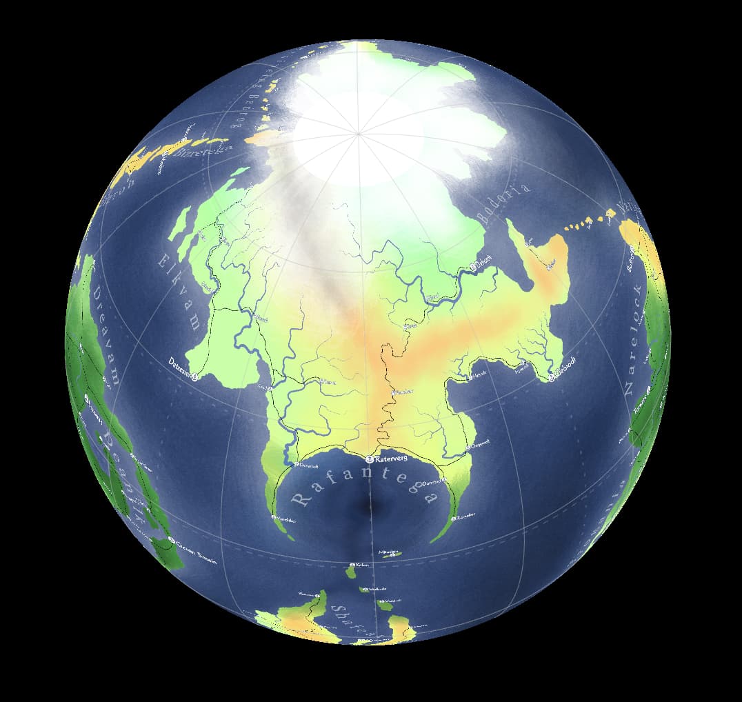 Jak widzicie, kontynent na północy to główny bohater - zatoka jest wynikiem starożytnego POTĘŻNEGO meteorytu który zniszczył planetę i całe na niej życie. Dzięki magii życie ofc powróciło ale to innym razem