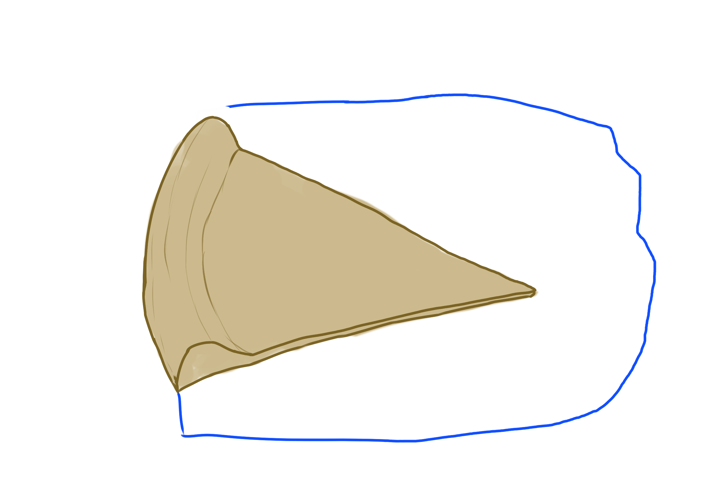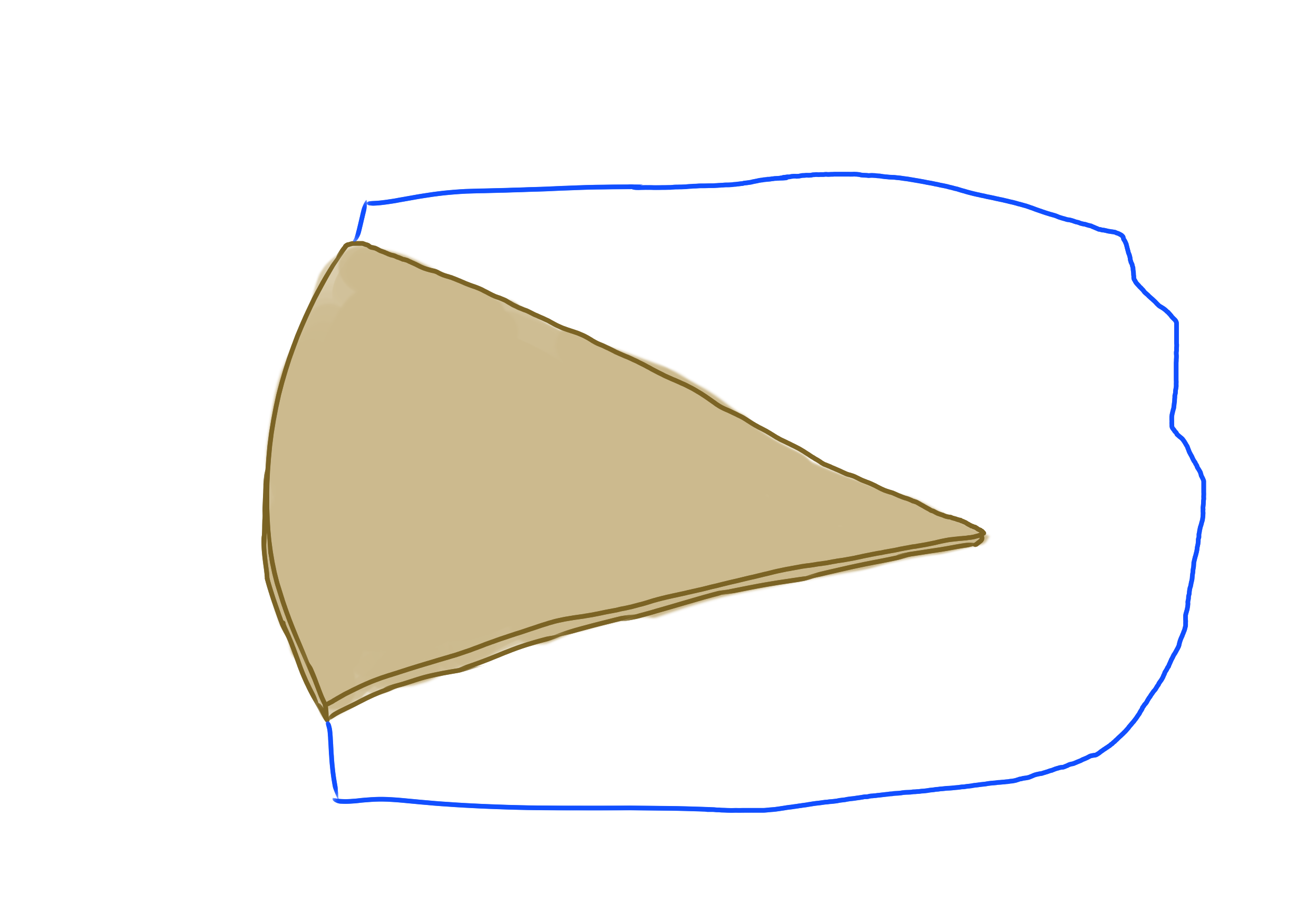 Zostawię wam jeszcze krótki tutorial krok po kroku pomagający zapamiętać, jak stworzyć najprostszy logiczny kontynent mogący pomieścić wiele ciekawych krain o przeróżnych atrybutach. Weźmy sobie jakiś obszar ograniczony z jednej strony naszą główną linią (tu zaznaczyłem coś w rodzaju płyty tektonicznej) i dorysujmy do odcinka tejże dwa zbiegające się boki tworzące trójkąt.