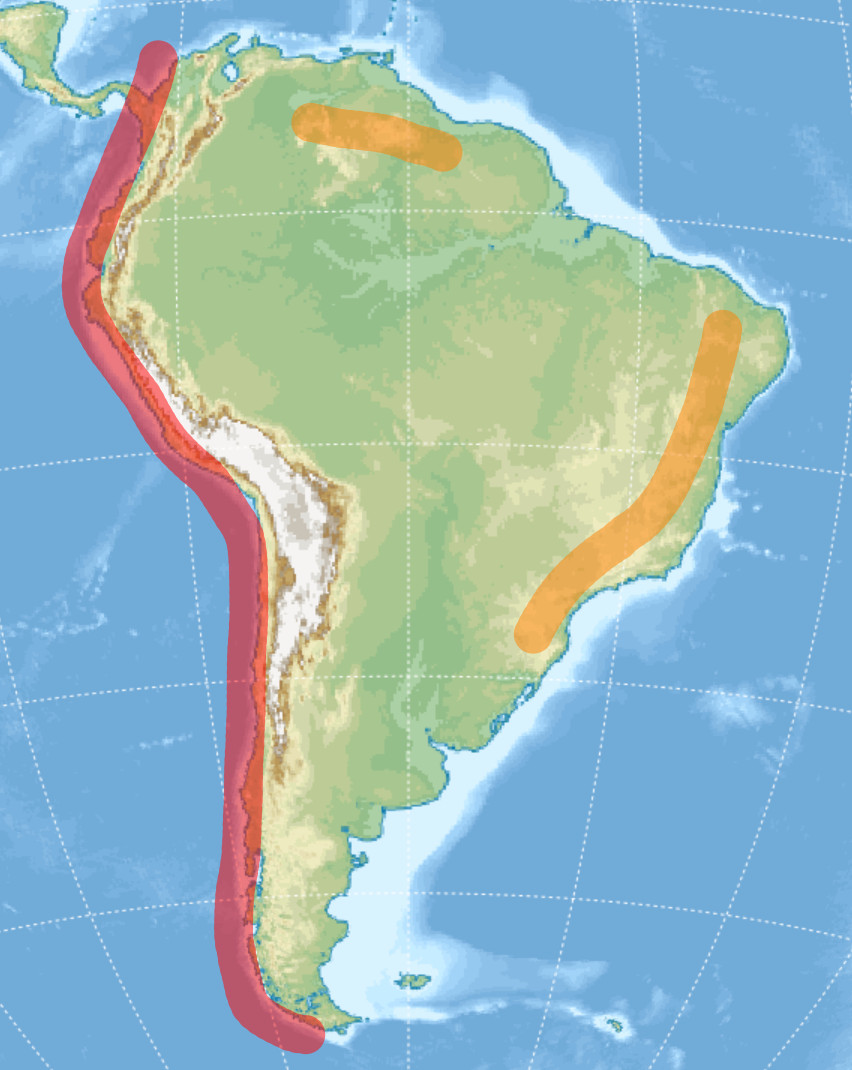 Ameryka Południowa to najprościej, najlogiczniej ukształtowany kontynent. Andy są rdzeniem zbrojącym ciasno zachodnie wybrzeże. Na wschodzie w oparciu o ten rdzeń zbudowany jest dość wąski, trójkątny ląd. Andy ustępują nizinom dość szybko na wschodzie, te zaś stopniowo przeradzają się dalej w wyżyny i stare góry zdobiące przeciwległe wybrzeże.