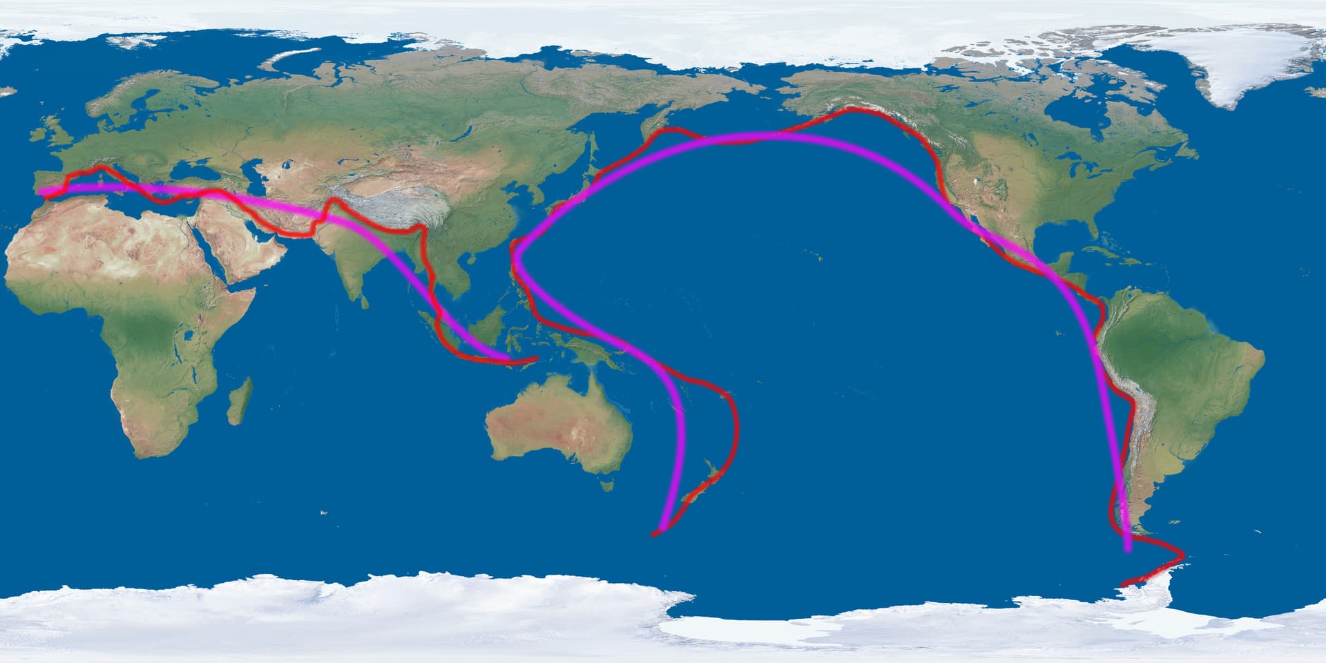 Ziemia ma bowiem linie kompozycyjne. Dwiema krzywymi wyznaczającymi rzeźbę naszej planety są łańcuch okołopacyficzny i łańcuch alpejsko-himalajski. Pierwsza z linii obiega Ocean Spokojny, obiegając ogromną część świata. Druga zaś oddziela płytę eurazjatycką od jej południowych sąsiadek. Zbliżają się do siebie w okolicy Papui.