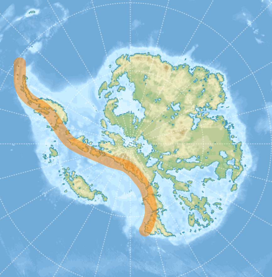 Wracając do krótszych bloków tekstu, przechodzimy do Antarktydy. Ta jest specyficzna, choćby dlatego, że musimy najpierw odkryć ją spod kolosalnej czapy lodowej, żeby ujrzeć strukturę skał stanowiących jej podstawę. Ponadto siedzi bezpiecznie na środku swojej płyty, z dala od granic, co daje dosyć statyczny placek. Na dwie części dzieli ją łańcuch starych, niewysokich gór z zamierzchłej orogenezy, przechodzący w długi, charakterystyczny półwysep.